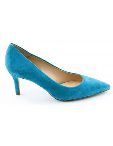 Decolletè artigianali con tomaia in capretto scamosciato fodera pelle suola coda tunit tacco 70mm rivestito